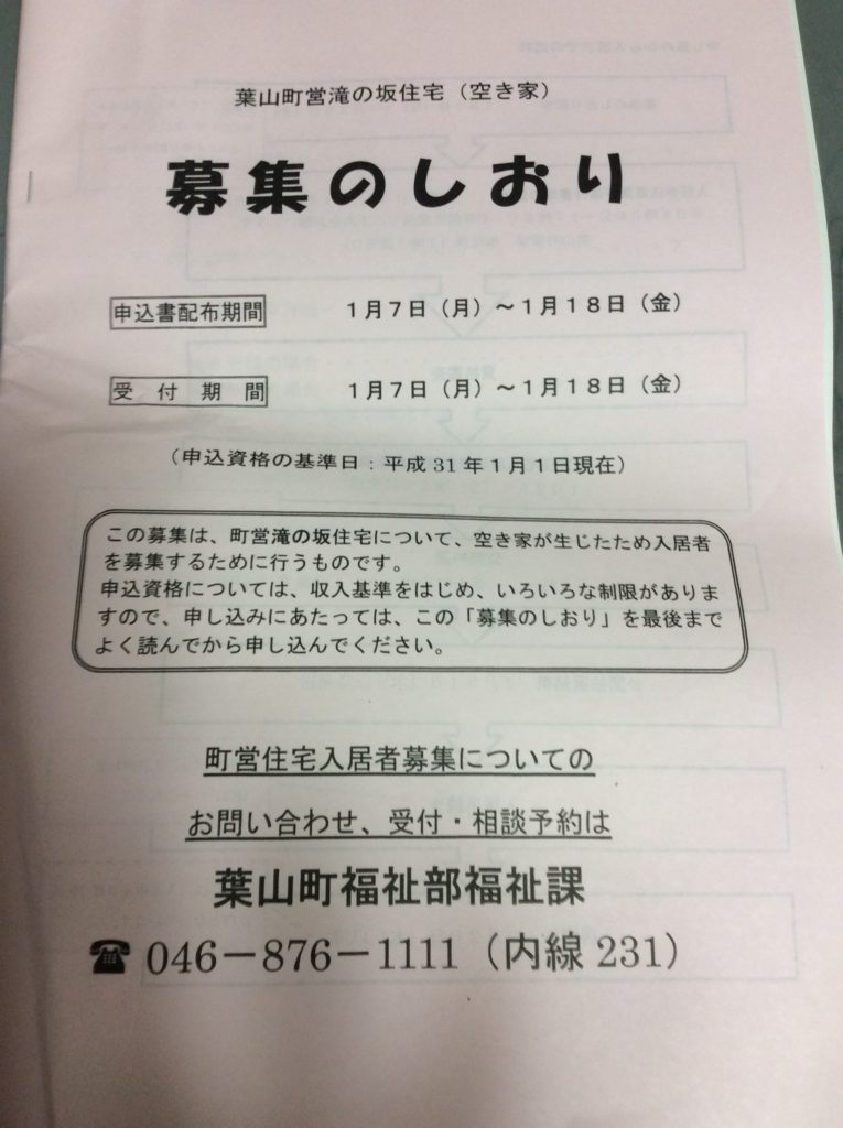 滝の坂住宅が1戸空きましたので、入居者募集しています。ご希望の方にお知らせします!