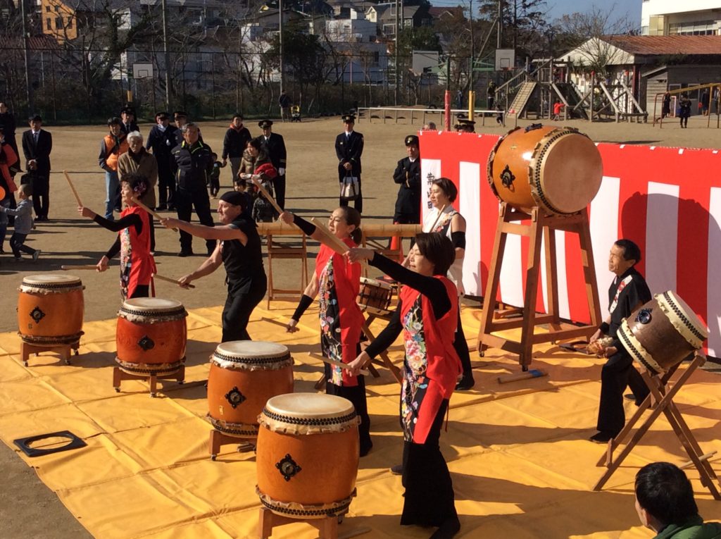 そして、10時から葉山小学校で出初式でした。今年は子どもたちがたくさん参加して、楽しい雰囲気でした。